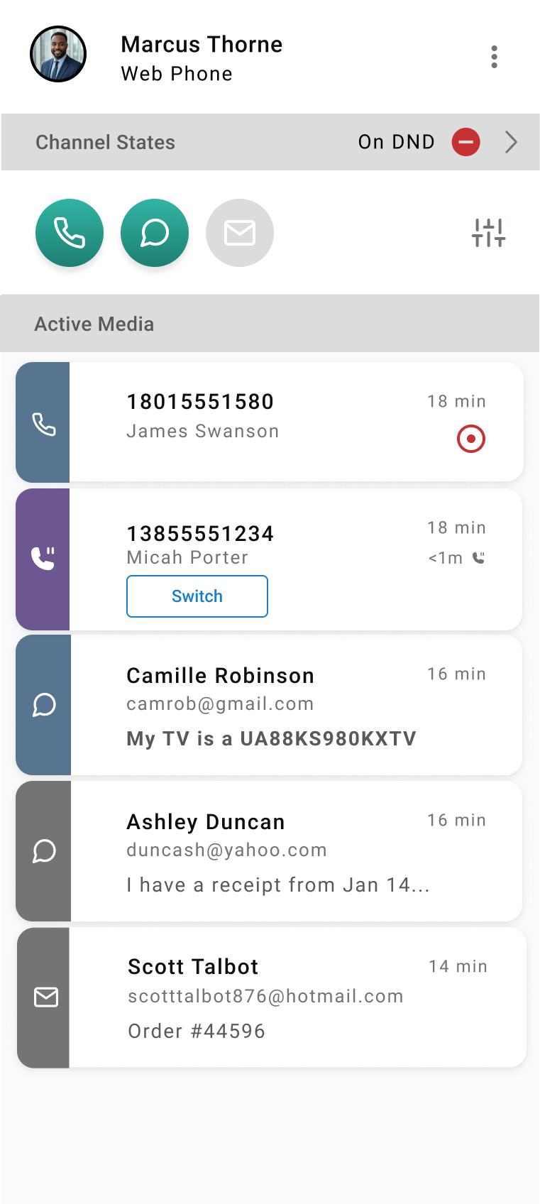 The agent client now uses color additions to more clearly distinguish between active media types and their focus.
