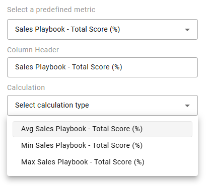 Once a metric is selected, you'll be able to further define the metric outcome with defining the calculation method and optional customized criteria.