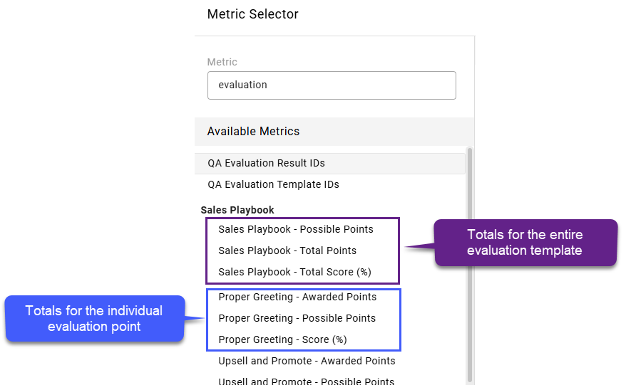 For example, Proper Greeting (Evaluation Point Name) - Total Points
