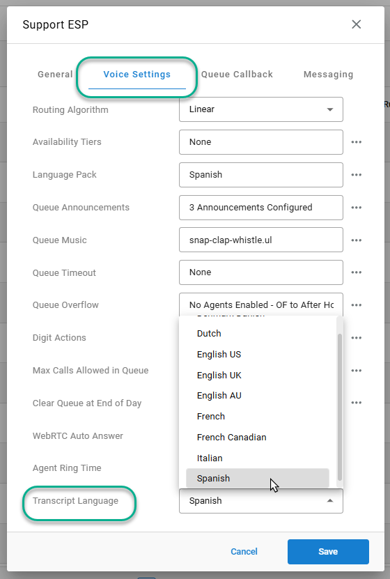 Once these changes are saved, all future calls (this will not apply retroactively to completed calls) associated with this skill will be processed using the selected language profile.